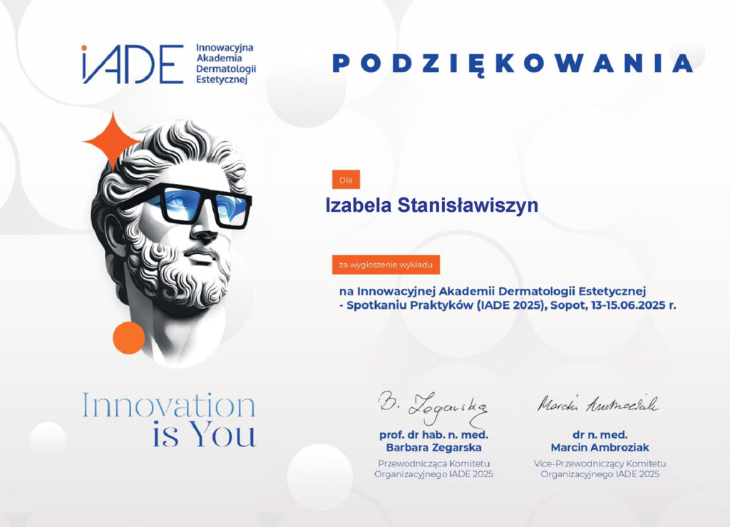 Moja prezentacja na VI Innowacyjnej Akademii Dermatologii Estetycznej iADE2025, w Sopocie